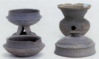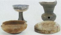 | 一宮町の後期古墳は、少数の例外を除けば、横穴式石室を埋葬施設としています。そこには、「須恵器」と呼ぶ焼き物が頻繁に副葬されているため、これら須恵器の年代から古墳の年代が導かれてきました。粘土でつくる焼き物は可塑性に富み、形や技法の変化がよく年代を反映するからです。写真には、便宜的に4段階に分けた須恵器の変化を紹介しています。同じ器種でも大きな違い |