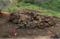 盛土填であった7号墳は、墳丘の内部に大量の石材を使用していて、あたかも積石塚墳を土で覆ったような感じでした。年代的にも2基の積石塚墳よりは新しく、同一の古墳群内でありながら、変容を遂げた姿とみることも可能でしょう。 |