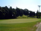 右手前バンカーが気になる。大きめのクラブで軽くスイング。風の通るホールなので要注意。