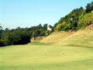 短いミドルではあるが左に山、右に谷とティーグラウンドに立つと攻めどころのないように感じる。