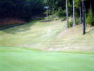 高低差12メートルの打ち下ろし。ハーフショットだけに距離感が試される。意外とパーの取りにくい